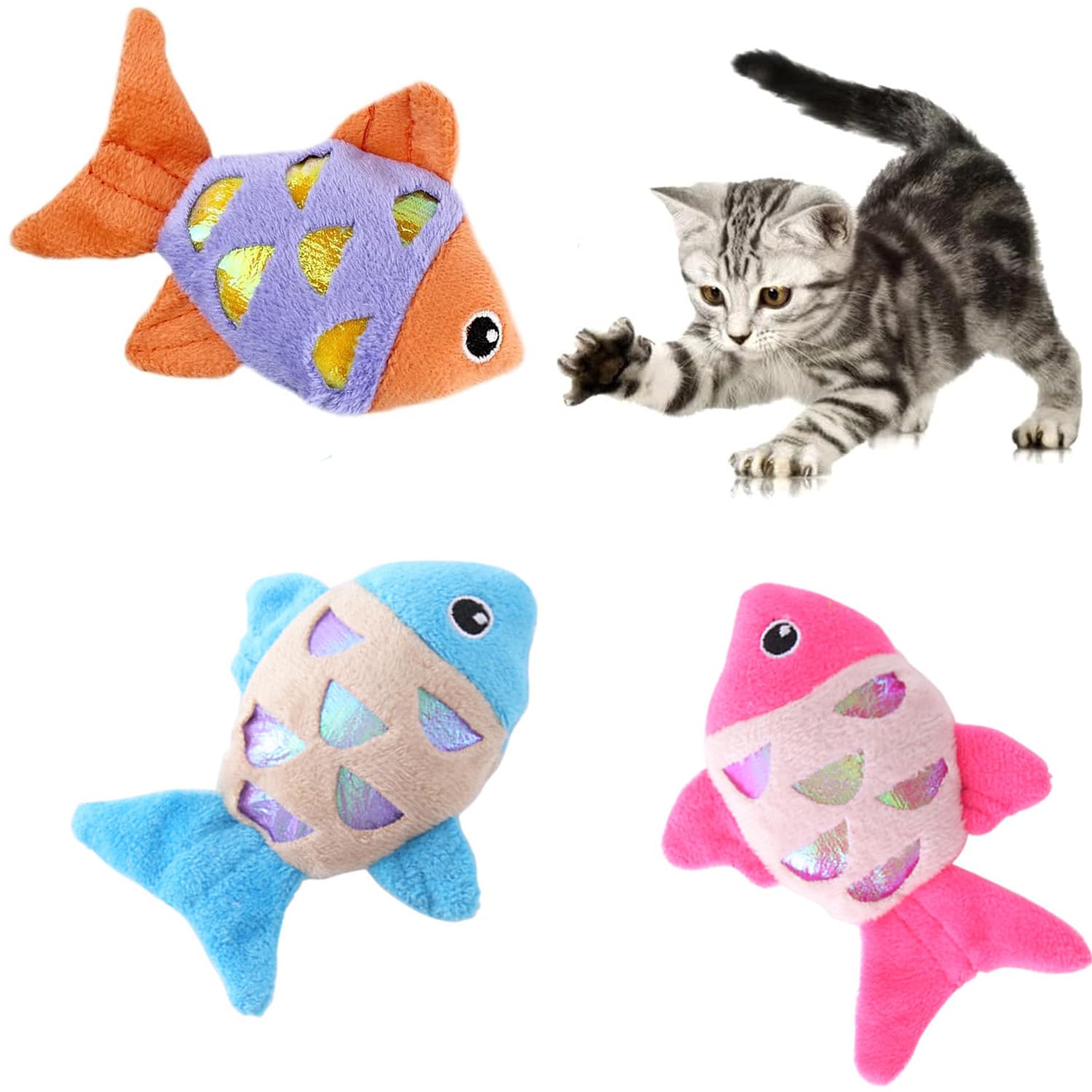 - 3 قطع من مجموعات ألعاب القطط اللطيفة على شكل سمكة: ثلاثة أسماك ذهبية في عبوة واحدة. يمكن لمظهرها اللطيف أن يحفز قططك على الصيد والإحضار. وفي الوقت نفسه، تطلق غريزة قطتك وتسمح لقططك بالقيام بمزيد من النشاط