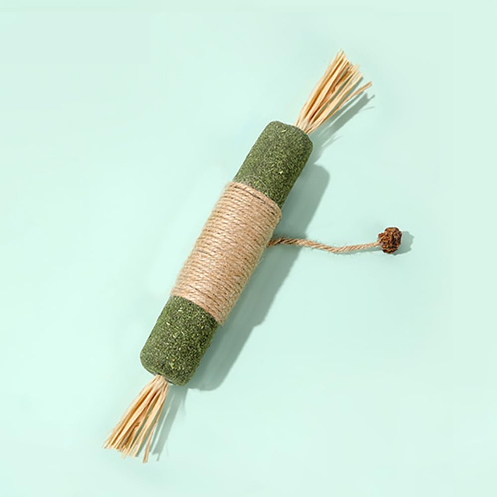 • 【المادة】عصا المضغ مصنوعة من النعناع البري وعشب الرافيا وحبل القنب والفواكه المرارية السنوية الطازجة، بدون أي إضافات صناعية أو مواد كيميائية، مما يوفر لقطتك أقرب تجربة إلى الطبيعة.