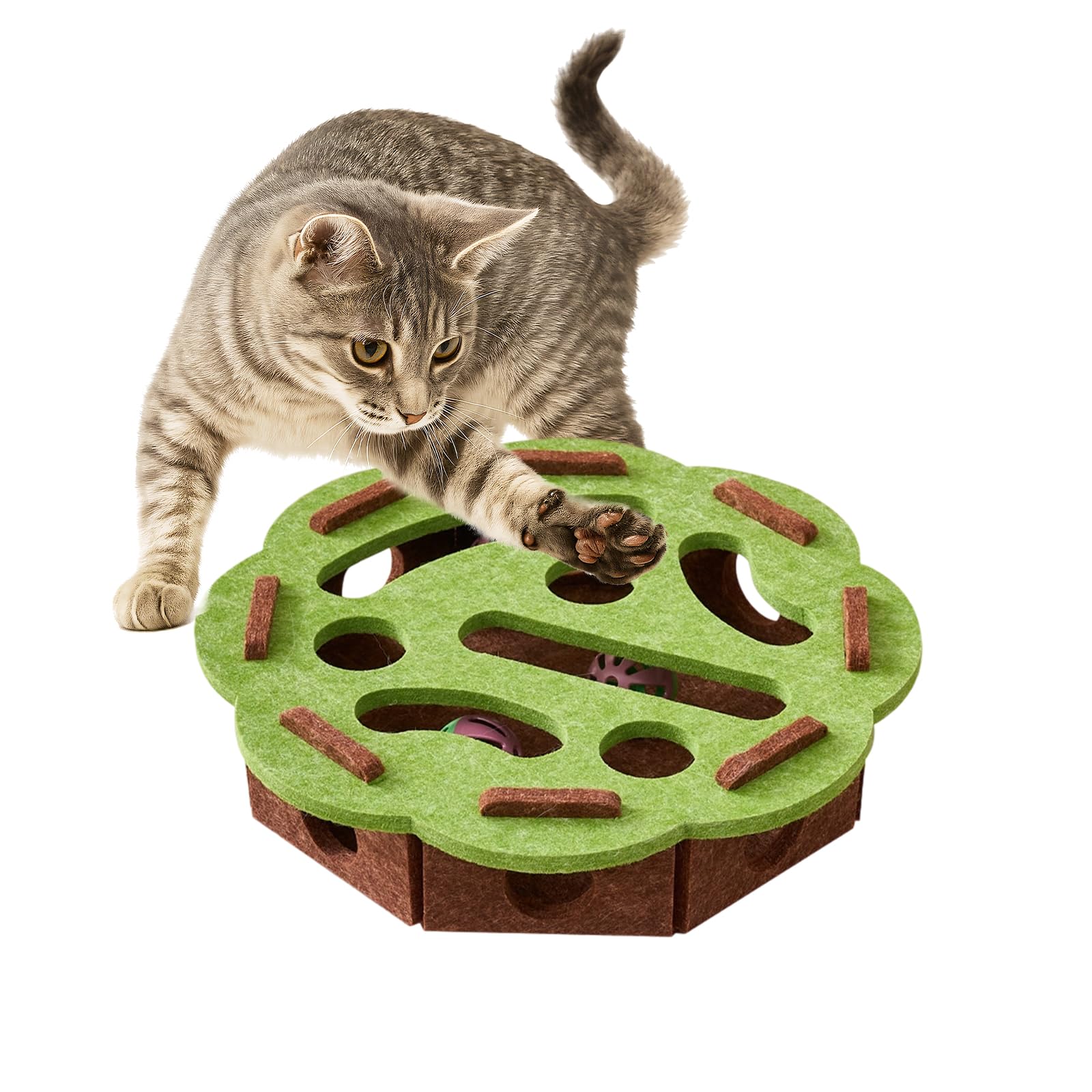 - ألعاب تفاعلية للقطط في الأماكن المغلقة: تتميز بلباد قابل لإعادة التدوير وأحجية مجوفة مع كرة جلجل للقطط الداخلية. يحفز صندوق الأحجية الغرائز الطبيعية للقطط، ويجذب القطط بتصميم متعدد المسارات، ويحافظ على نشاط القطط وانخراطها الذهني.