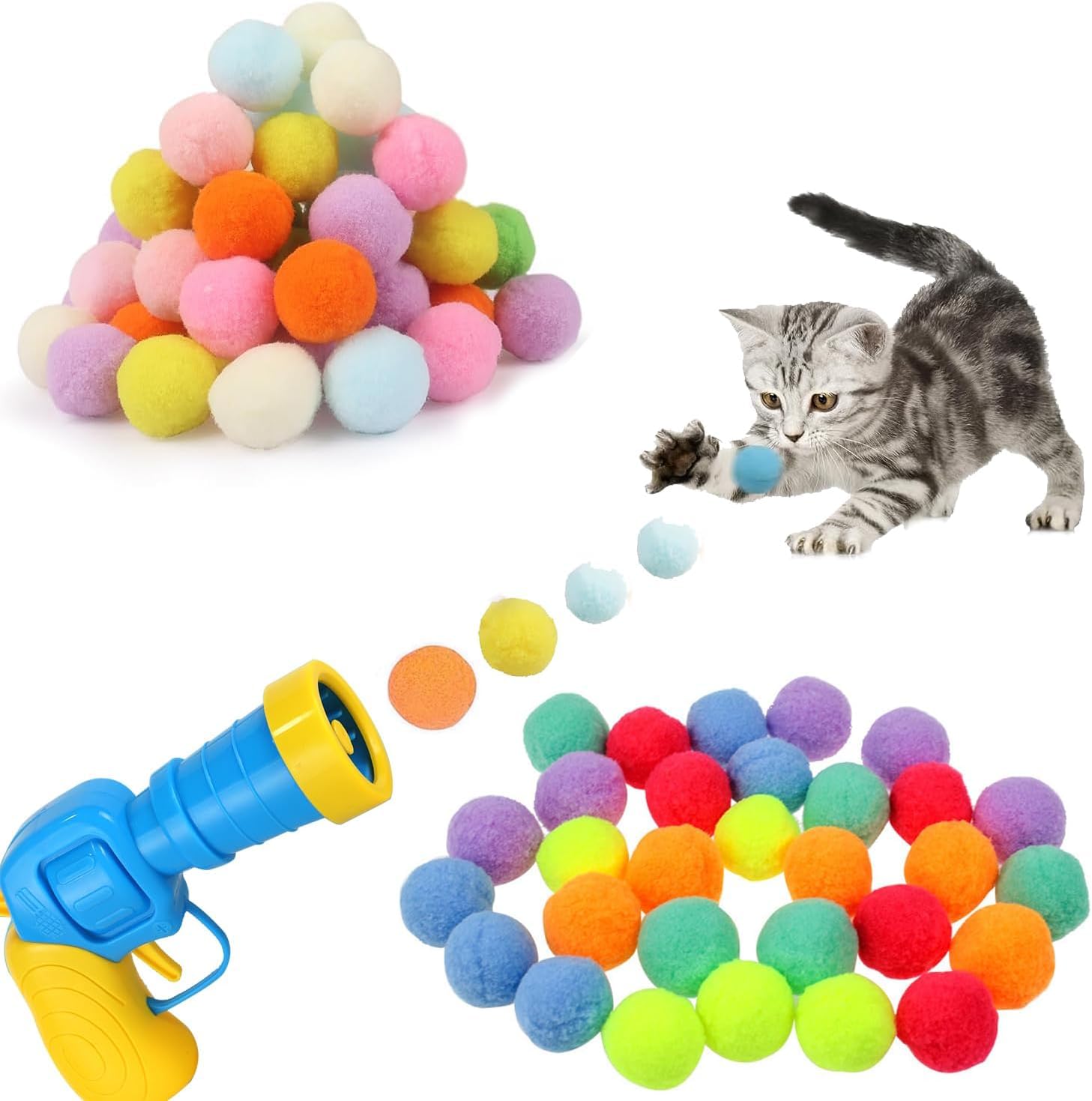 • مجموعة اللعب التفاعلية: تتضمن مجموعة الترفيه الكاملة للقطط قاذفة كرات و50 كرة بوم بوم ناعمة ملونة من أجل متعة وتمرين لا نهاية لها للقطط