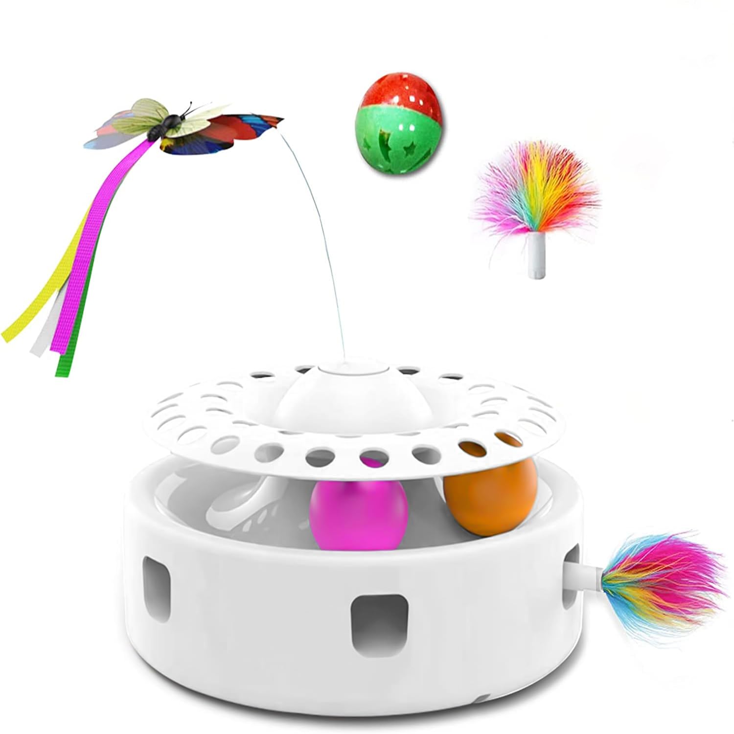 - [أفضل ضربة مقابل نقودك] تسعى ألعاب القطط التفاعلية 3 في 1 إلى إشراك الغرائز الطبيعية للقطط: المطاردة والانقضاض ونصب الكمين. كرات دوارة تحفز حواس قطتك. ريش فرقع يحفز غرائز الصيد. وتشجع الفراشة الدوارة على المطاردة. كل هذه الأشياء تجعل القطط تحصل على ما يكفي من التمارين.