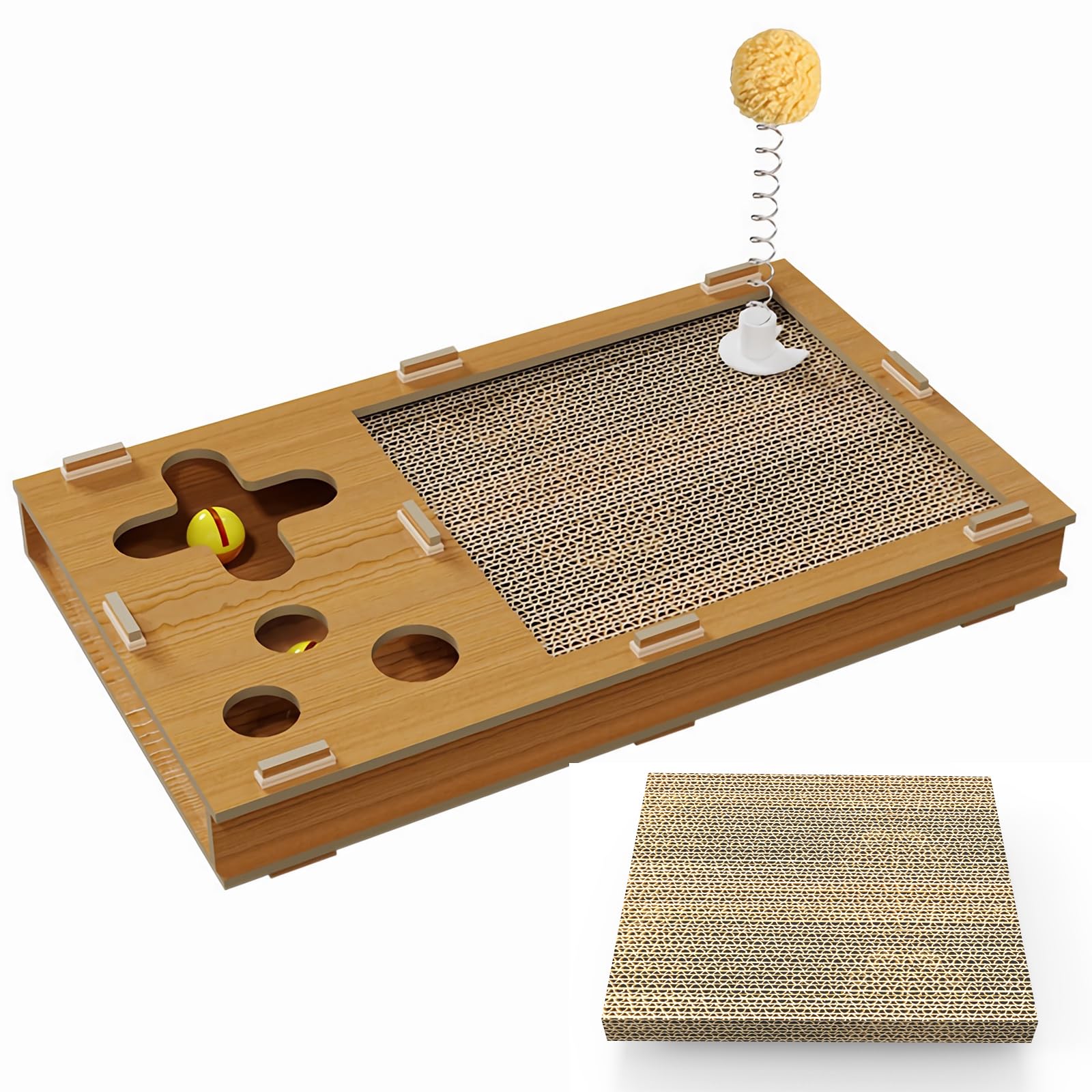 لوح خدش للقطط من الورق المقوى مع ألعاب متعددة ولعبة كرة، وسادة خدش للقطط المموجة مع لوح بديل من ايسو.