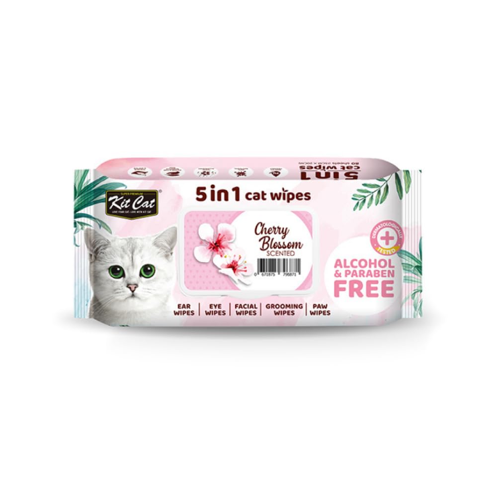 مناديل مبللة 5 في 1 برائحة زهور الكرز من كيت كات، 80 قطعة