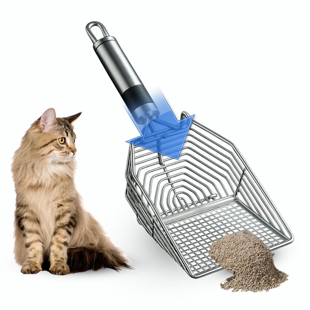 🐾مغرفة فضلات القطط – منخل فضلات متين من الستانلس ستيل