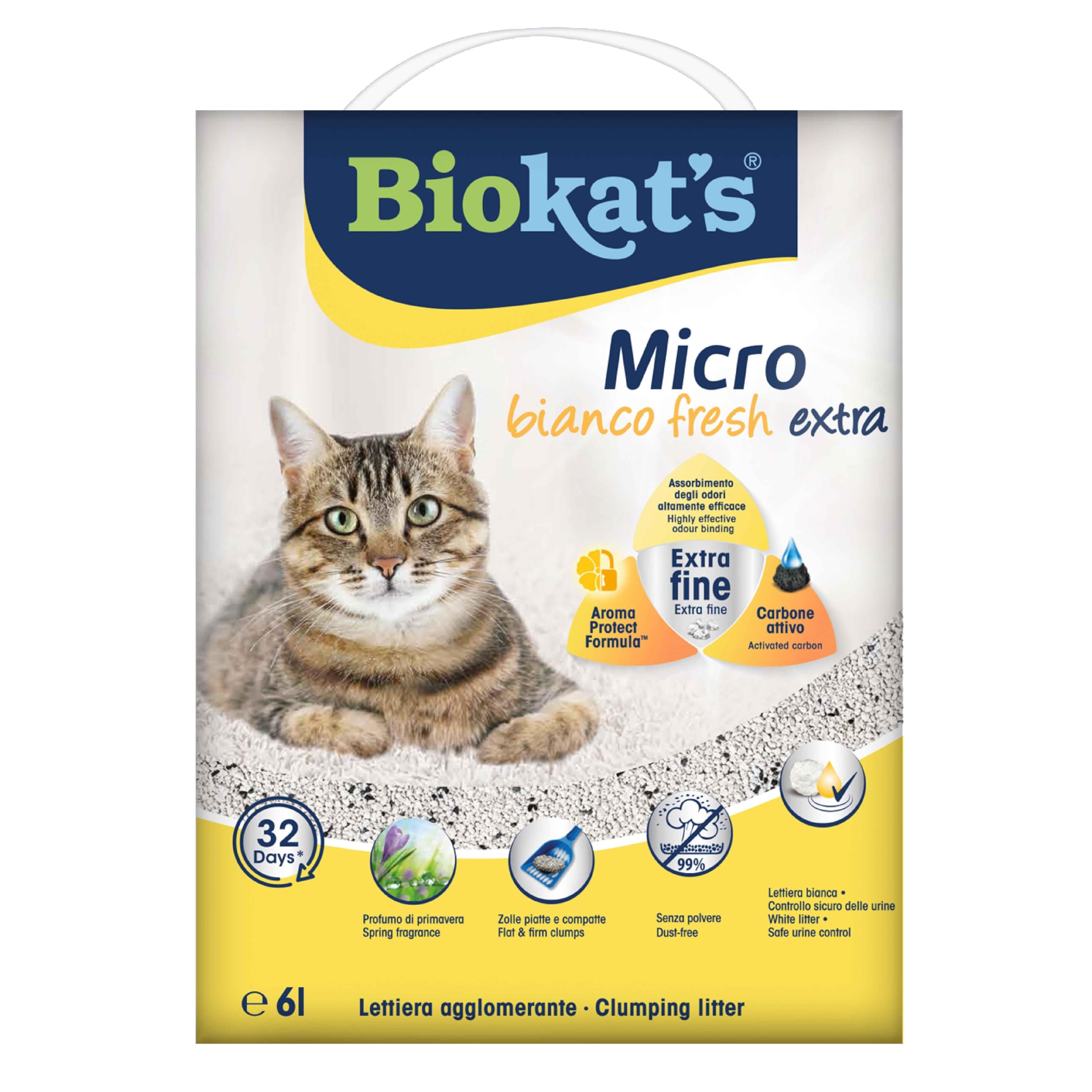 رمل فضلات القطط من مايكرو بيانكو هو رمل فضلات قطط بنتونيت أبيض فائق التكتل عالي الجودة يتميز بحجمه المحبب الدقيق وامتصاص فائق للروائح. مصنوع في منشآت مع ضمان جودة صارم ومستدام باستخدام طين البنتونيت الطبيعي عالي الجودة. بفضل حجمها المحبب الدقيق وامتصاصها الفائق، تلبي عبوة بوزن 7 كجم احتياجات الإخراج لمدة 45 يومًا. امتصاص الرائحة جيد جدًا. تتميز بقدرة فائقة على الفتل. لون أبيض/كريمي. يتكون من طين البنتونيت الأبيض الطبيعي مع نسبة عالية من مونتموريلونيت. يوصى باستخدامه للقطط التي يبلغ متوسط وزنها 5 كغم؛ املأ حاوية الرمل بارتفاع 7 سم تقريبًا. تنظيف يومي. يمكن التخلص من الرمال المستخدمة عن طريق حاوية النفايات البيولوجية.