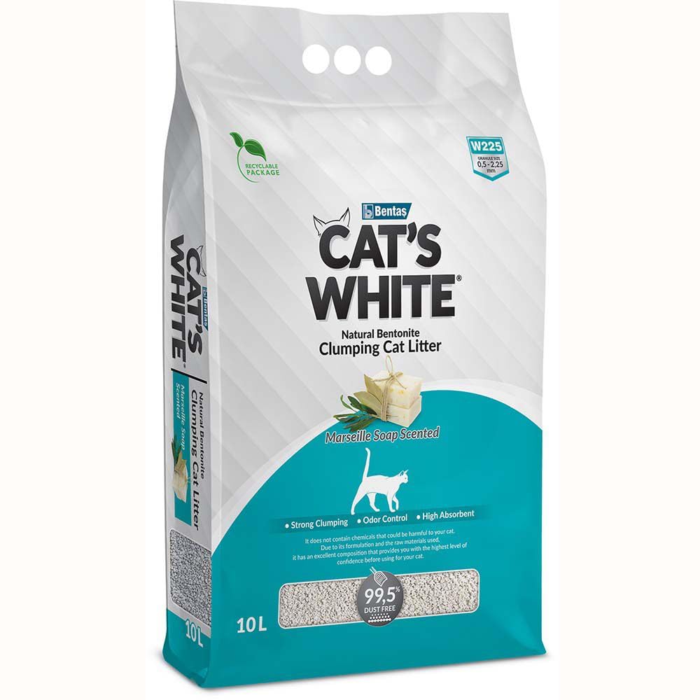 صابون مرسيليا المعطر للقطط من كاتس وايت®. رمل فضلات القطط المتكتل مع قدرة عالية على امتصاص السوائل. يتم تنشيط جزيئات العطر في الحبوب المعطرة عندما تتلامس مع السائل وتوفر رائحة صابون مارسيليا اللطيفة. توزيع الحبوب من الخشنة إلى الدقيقة يسمح للسائل الموجود على السطح بالمرور على الفور إلى الأسفل، مما يزيل تمامًا مشاكل مثل التعفن والالتصاق بالمخالب. بفضل معدن المونتوريلونيت الطبيعي الذي يحتوي عليه، فإن جميع أنواع الروائح الكريهة محتجزة. يتم إنتاجه بتقنية عالية ويتم تعبئته بدون استخدام اليدين ووضعه قيد الاستخدام. تم إنتاجه باستخدام موارد محلية بنسبة 100%. مقاس الحبيبات W225 – 0.5 ملم – 2.25 ملم