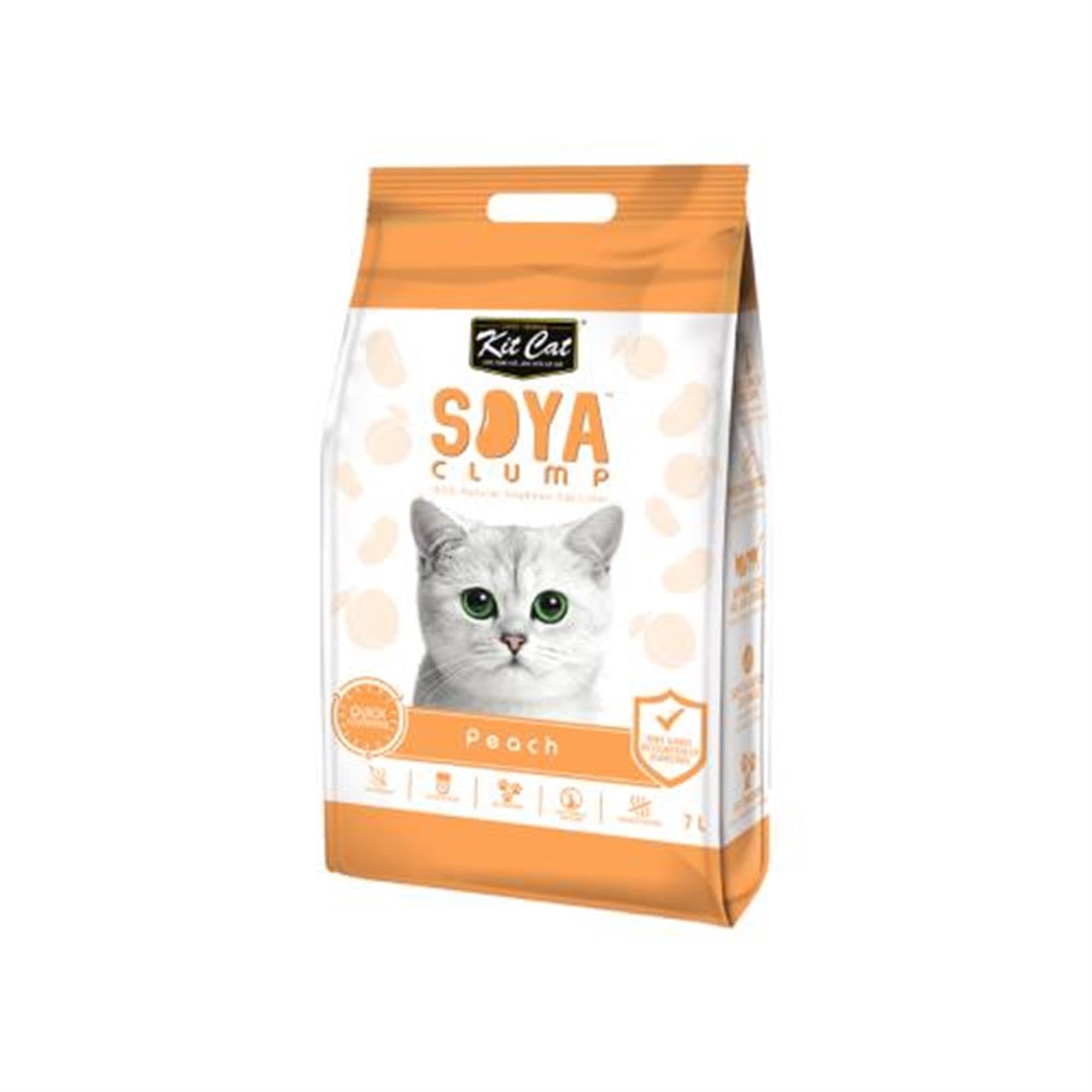 قطع فول الصويا للقطط من كيت كات هي 100% قابلة للتحلل الحيوي برائحة خفيفة. منتج فريد مصنوع من أجزاء غير قابلة للذوبان من فول الصويا الموجود في الحليب المصنوع من الصويا. عادةً ما يتم التخلص من هذه الأجزاء غير القابلة للذوبان بشكل أساسي في مكب النفايات، ولكن كيت كات ابتكرت استخداماً ثانياً لهذه المادة التي تعد نفايات لاستخدامها كتراب فضلات للقطط. يعمل تراب فضلات القطط هذا كمادة ماصة للسوائل حيث يمكنه إمتصاص الرطوبة حتى 3 مرات أكثر مقارنةً بتراب الفضلات التقليدي أو التراب الكريستالي. مع تركيبته التي تتكتل بشكل فوري، يتكتل بشكل فوري عند ملامسة للسوائل. كتل الصويا قابلة للتصريف وخفيفة الوزن وسهلة الإزالة وتتميز بمعدل امتصاص سريع لحماية قطتك ووعاء الفضلات من الأمونيا السامة ورائحة البول. يتم إنتاج تراب فضلات القطط من فول الصويا الطبيعي ذو المواصفات الغذائية والذي لا يحتوي على مواد كيميائية أو أصباغ صناعية مما يجعله آمن للهرر الصغيرة والقطط ولنفسك.