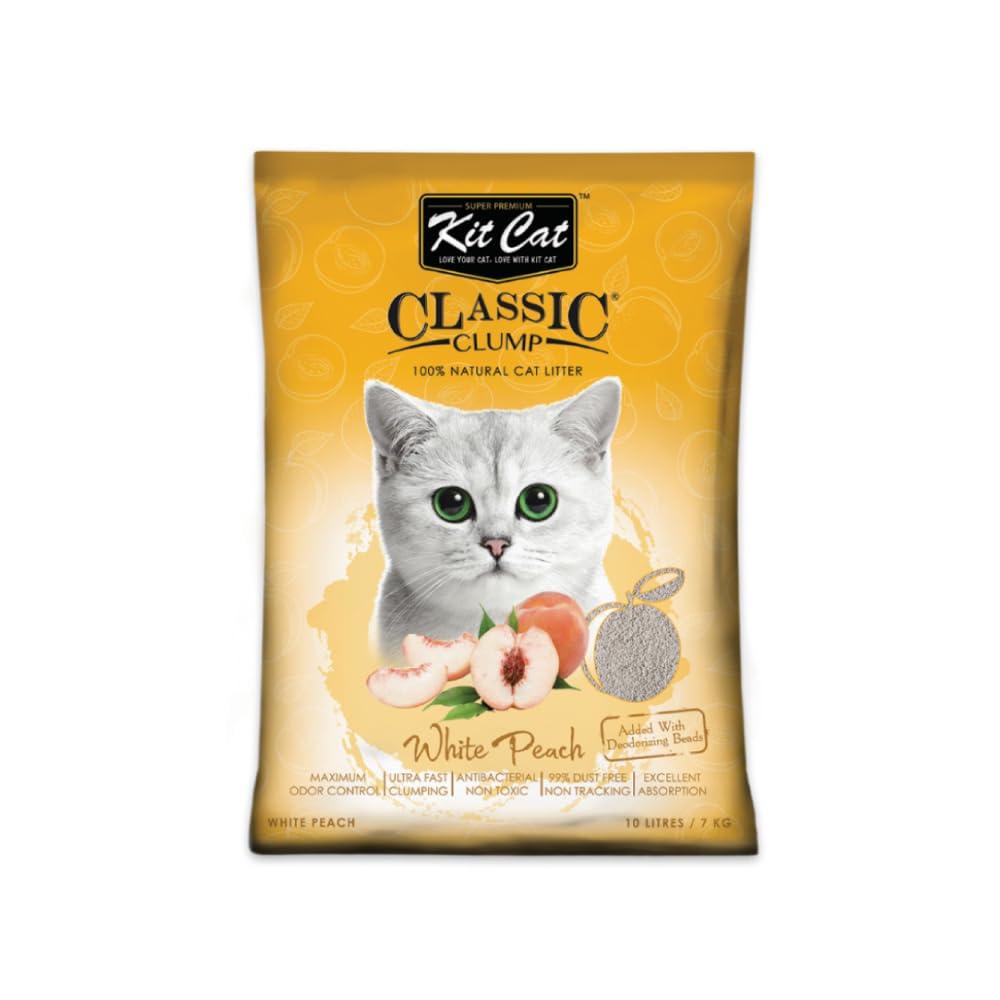 تراب الفضلات المتكتل كلاسيك كلامب بالخوخ الابيض من كيت كات مصمم خصيصًا من قبل محبي القطط لتوفير تحكم استثنائي في الرائحة وسهولة التنظيف. يتميز بقدرة فائقة على التكتل مما يتيح التنظيف بسهولة. ببساطة قم بغرف الكتل ورميها بعيداً. يبقى تراب فضلات القطط نظيفًا وعديم الرائحة وجاهزًا لإعادة الاستخدام مما يجعل هذا المنتج اختياراً اقتصادياً وصديقاً للبيئة. لا يحتوي على إضافات كيميائية ولا يسبب ضررًا للحيوانات الأليفة أو البشر.