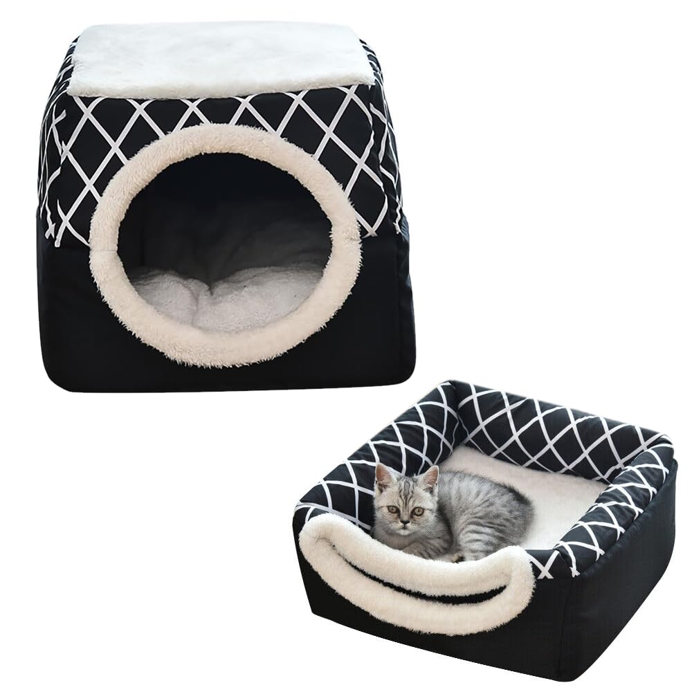 بيت الحيوانات الأليفة 2 في 1: يمكن استخدامه كمنزل للقطط وكذلك سرير للقطط. مناسبة طوال العام، مما يوفر بيئة مريحة آمنة ودافئة لحيوانك الأليف!