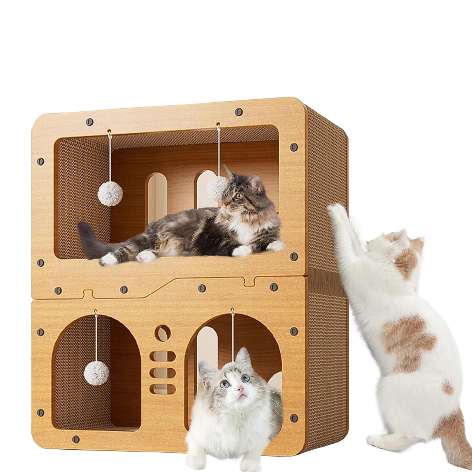 • 【مصمم للقطط】: تم تصميم منزل القطط من الورق المقوى ليكون له طابقين لأعلى وأسفل للقطط للعب في نفس الوقت. بيوت القطط للقطط في الأماكن المغلقة ليست مجرد صالة للقطط للراحة والاسترخاء، ولكنها أيضًا لوح خدش للقطط للعب والتمرين..