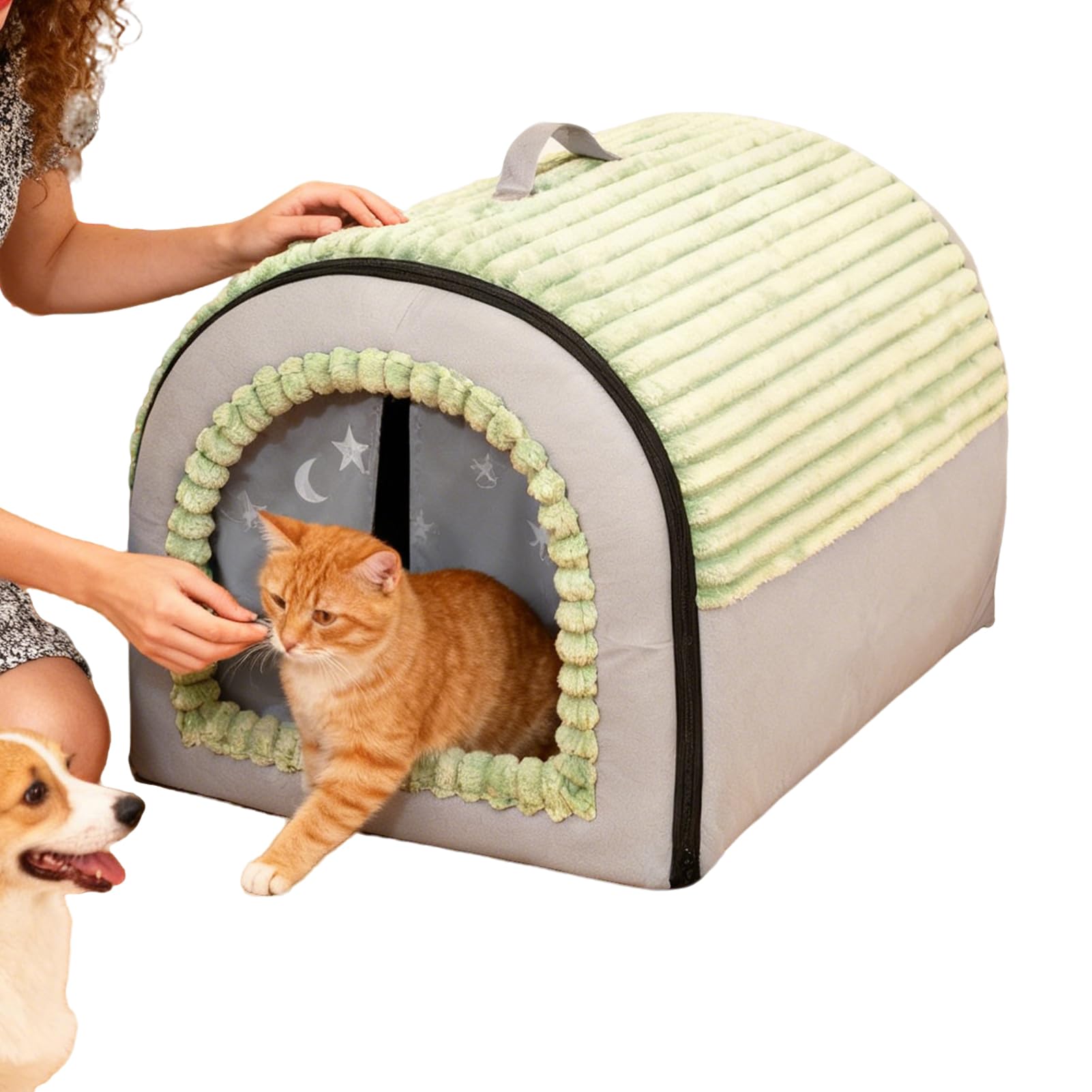 • تصميم عملي: يتميز كهف سرير القطط بلوحة باب للخصوصية، مما يضمن تمتع قطتك براحة منعزلة بينما يوفر القماش المعزول والسميك أقصى درجات الدفء، مما يجعله مثاليًا للأيام الباردة أو القطط الحساسة التي تقدر مساحتها الشخصية في زوايا المنزل الهادئة