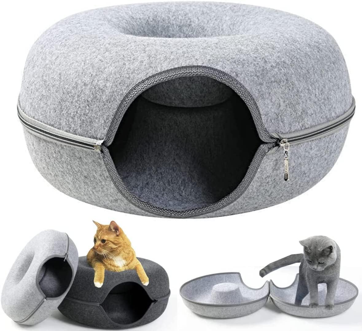 • 【طبقة مزدوجة متعددة الأغراض】تتميز فضلات القطط هذه بتصميم مزدوج الطبقات مع سرير دونات في الأعلى وعش على شكل نفق في الأسفل. تصميم دونات/دائري مركب مزدوج الطبقات لتلبية احتياجات ورغبات القطط في الحفر واللعب، يمكن أن يجلب متعة غير محدودة للقطط، تصميم مقعر على شكل قبة يسمح لقطة أخرى بالراحة، ويمكن استخدام اثنين في نفس الوقت، يرجى عدم الإزعاج. يمكن للقطط النوم لمدة تصل إلى 20 ساعة في اليوم. هذا هو السبب في أنه من الضروري للغاية أن يكون لديك سرير للقطط يجعلهم يشعرون بالأمان والاسترخاء للراحة.