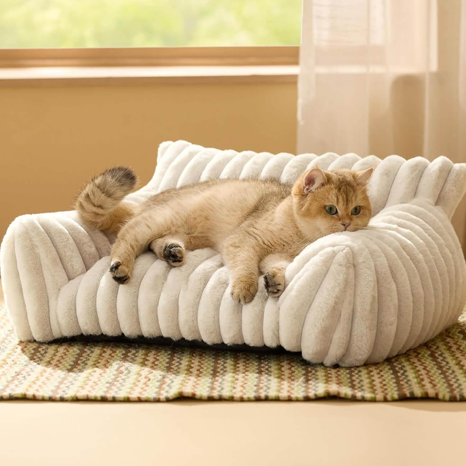✔ تصميم قابل للغسل في الغسالة يجعل تنظيف كنبة القطط المخملية المموجة هذه أمرًا سهلًا.