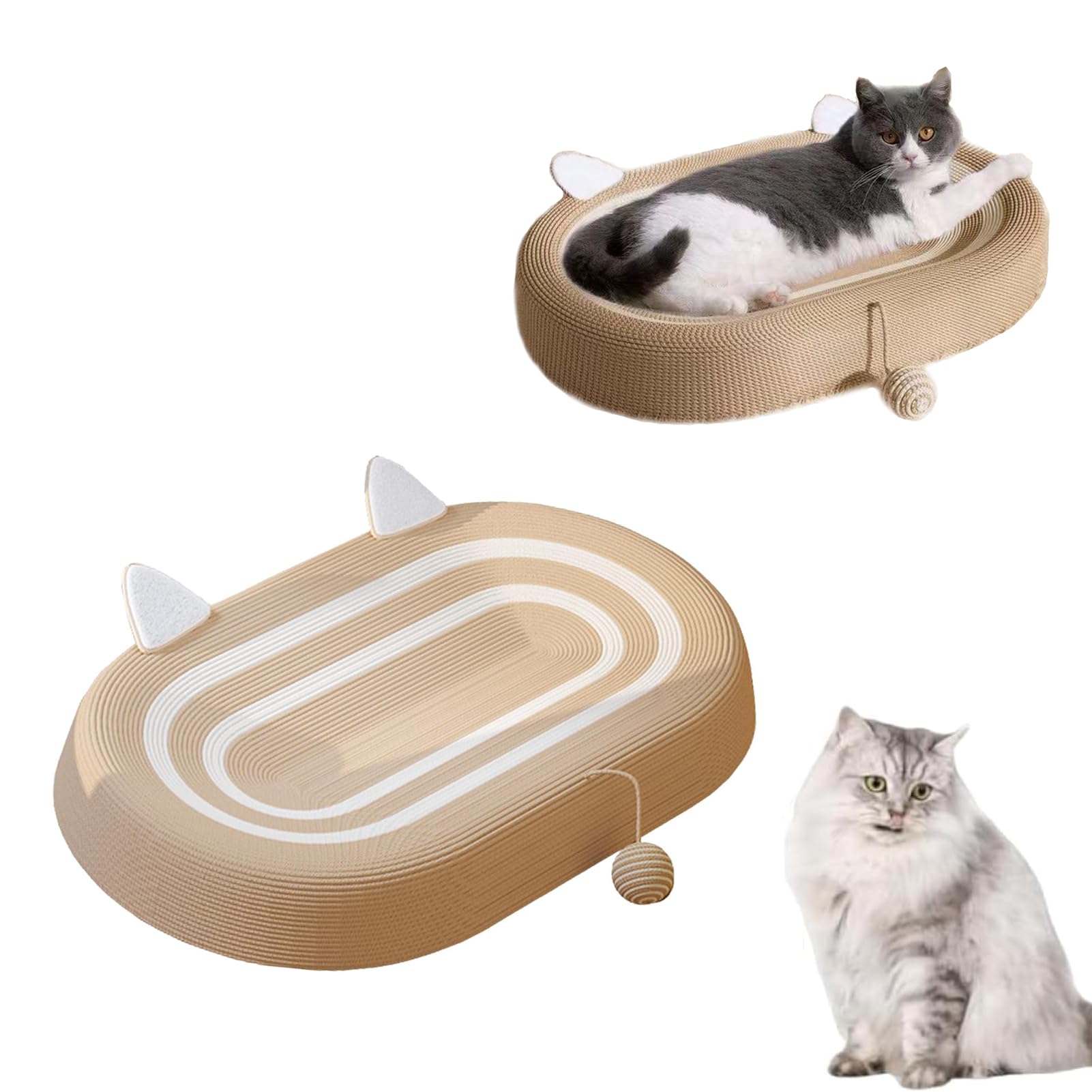 - تصميم متعدد الوظائف: يجمع هذا المنتج بين سرير الخدش للقطط وخدش القطط، مما يوفر مساحة مزدوجة الأغراض لحيوانك الأليف المحبوب للاسترخاء واللعب. إن تضمين كرة السحب يثري متعة القطة. يضيف تصميم أذن القطة جوًا مريحًا إلى غرفة المعيشة.