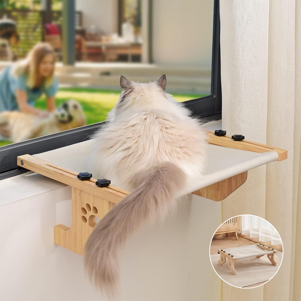 - 【مواد فائقة】: الإطار مصنوع من مادة خشبية صلبة عالية الجودة ويتضمن أدوات عالية الجودة لتثبيت سرير نافذة القطط بإحكام في مكانه. يتميز بسعة وزن ثابتة تصل إلى 44 باوند وسعة وزن ديناميكية تصل إلى 16.5 باوند. مصممة بنمط مخلب قطة لطيف.