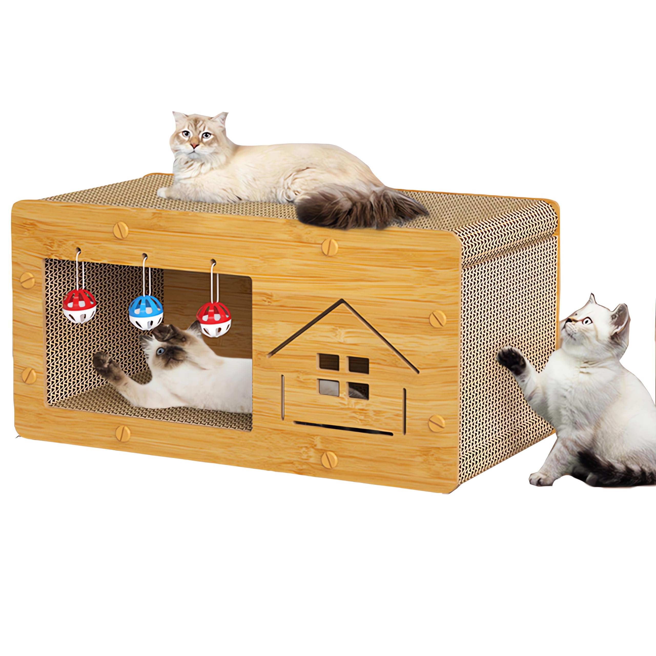 • 【عش خدش ممتع للقطط】يأتي منزل القطط مع كرة جرس للسماح لهم باللعب بحرية وإطلاق طبيعة القطط. تصميم ورق مموج مزدوج، يمكن للقطط أن تخدش كما تشاء. يمكن للقطط الجلوس على منصة صندوق القطط، ومراقبة الوضع بالداخل بهدوء، مما يتيح للحيوان الأليف إمكانية التفاعل مع من حوله في أي وقت.