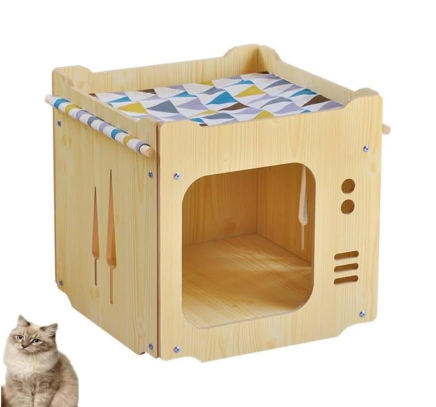 منزل خشبي للقطط قابل للتكديس من انتول يمنح الحيوانات الأليفة منزلاً دافئاً