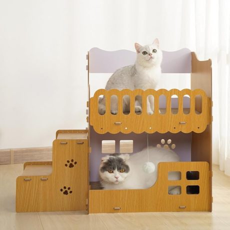 منازل قطط من ال بي ام تي، منزل خدش للقطط من الورق المقوى للقطط الصغيرة، سرير خشبي للقطط، اثاث اسرة قطط، مسكن قطط متين من طابقين مع وسادة خدش