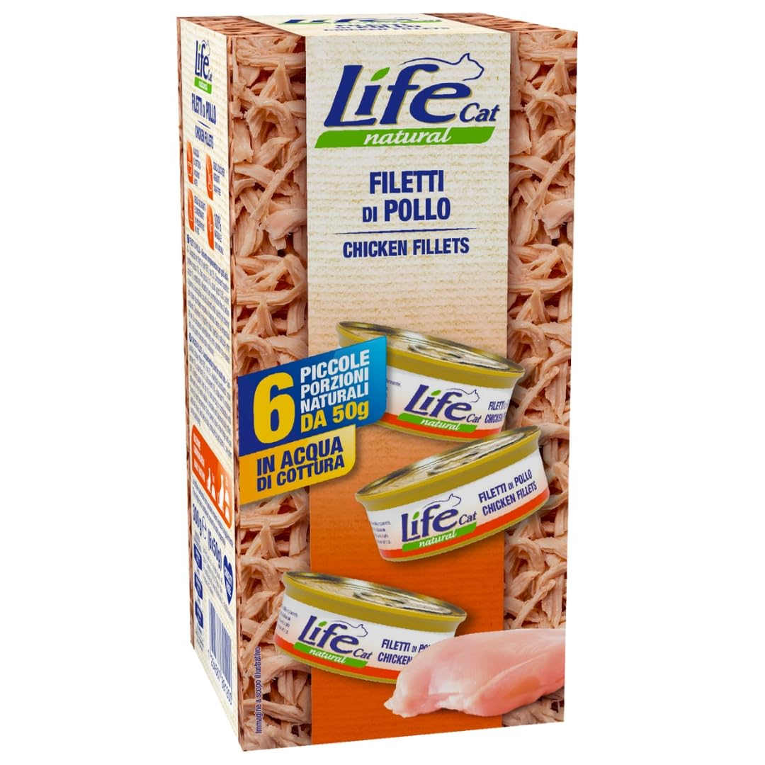 لايف كات شرائح الدجاج هي طعام طبيعي بنسبة 100% مصنوع من شرائح عالية الجودة من صدور الدجاج الحقيقية. يتم طهي كل قطعة على البخار وحفظها في مرق الطهي. خالٍ من الأصباغ والمواد الحافظة والمواد المضافة. غني بالبروتينات وقليل من الدهون والكربوهيدرات، ويحترم الاحتياجات الغذائية للقطط. تضفي إضافة الأنشوجة مذاقًا أنيقًا. يدعم الصحة العامة لقطتك. يأتي في 6 عبوات بوزن 50 غرام.