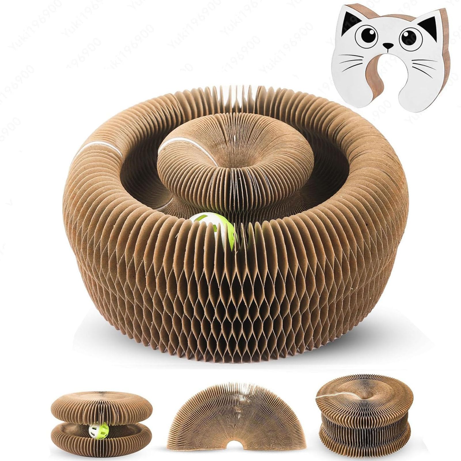 سيستمتع صديقك القطط بساعات من اللعب مع لعبة القطط. يسمح هيكله المصنوع من الورق المقوى على شكل أكورديون بمزيد من الخدش والانقضاض، مع استخدامه كسرير مريح للاسترخاء.