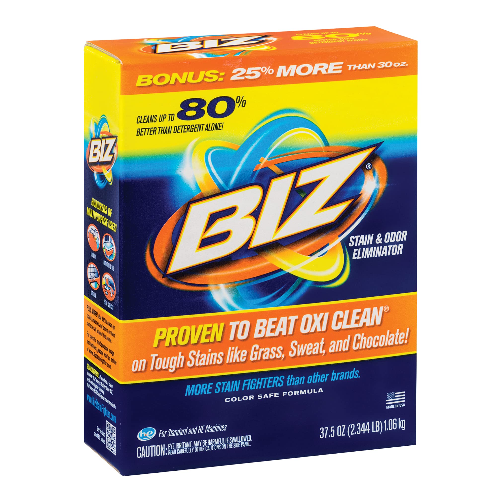 - أثبت كفاءته في التغلب على اوكسي كلين على البقع القاسية مثل العشب والعرق والشيكولاتة.