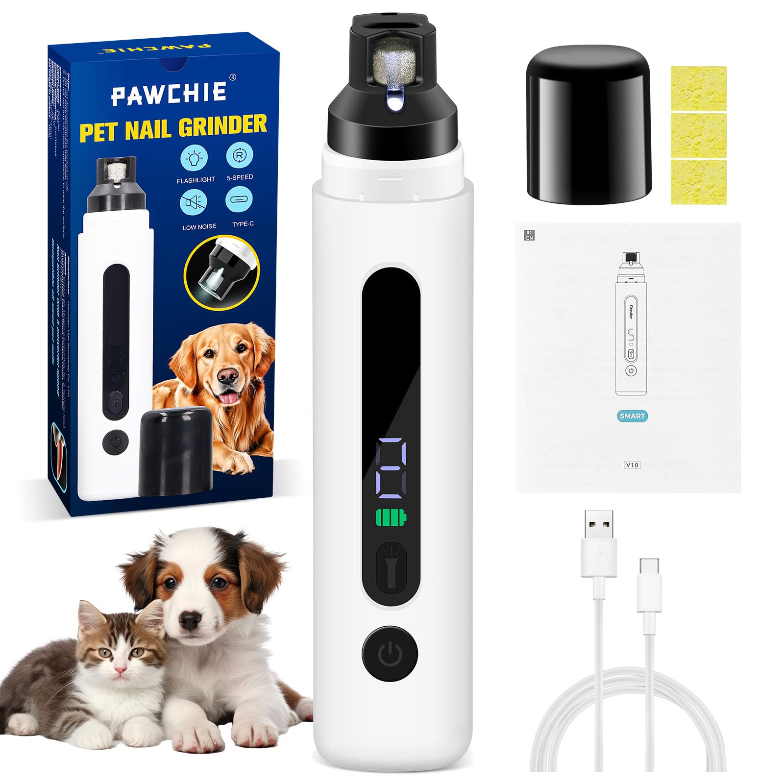 - مفتاح بـ 5 سرعات و3 منافذ للطحن: تأتي أداة تشذيب أظافر الكلاب هذه مع 5 سرعات متقدمة قابلة للتعديل، وتصميم منخفض إلى عالي السرعة قوي بما يكفي لدعم الطحن الثقيل. 3 منافذ طحن تناسب الحيوانات الأليفة الصغيرة أو المتوسطة أو الكبيرة. ما عليك سوى اختيار المنفذ والسرعة المناسبين حسب حجم حيوانك الأليف وصلابة الأظافر