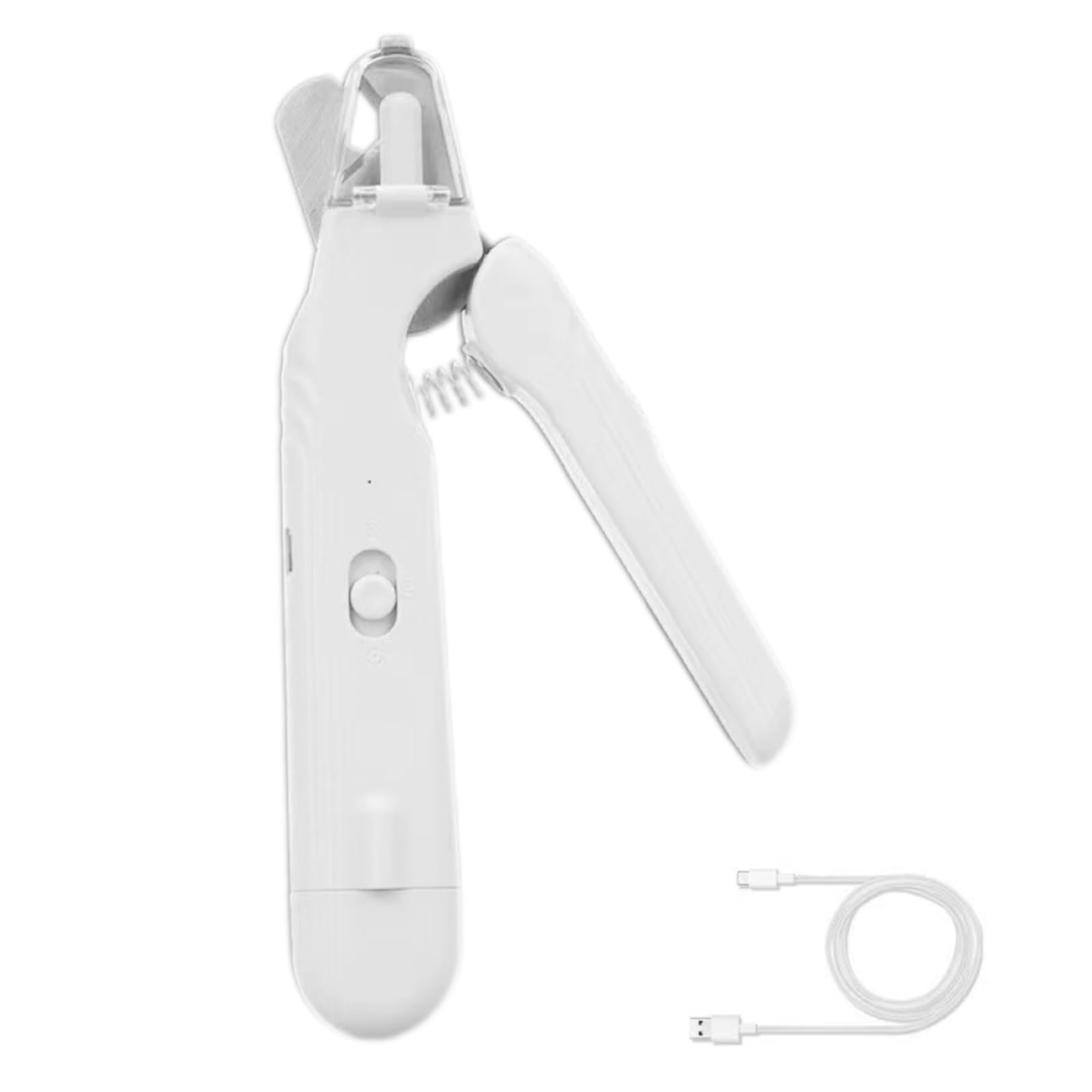 مقص ومطحنة الحيوانات الأليفة، صندوق تخزين الأظافر بشفرة حادة من الستانلس ستيل، ملاحظة: قد يكون للضوء LED تأثيرات إضاءة أقل على الأظافر الداكنة