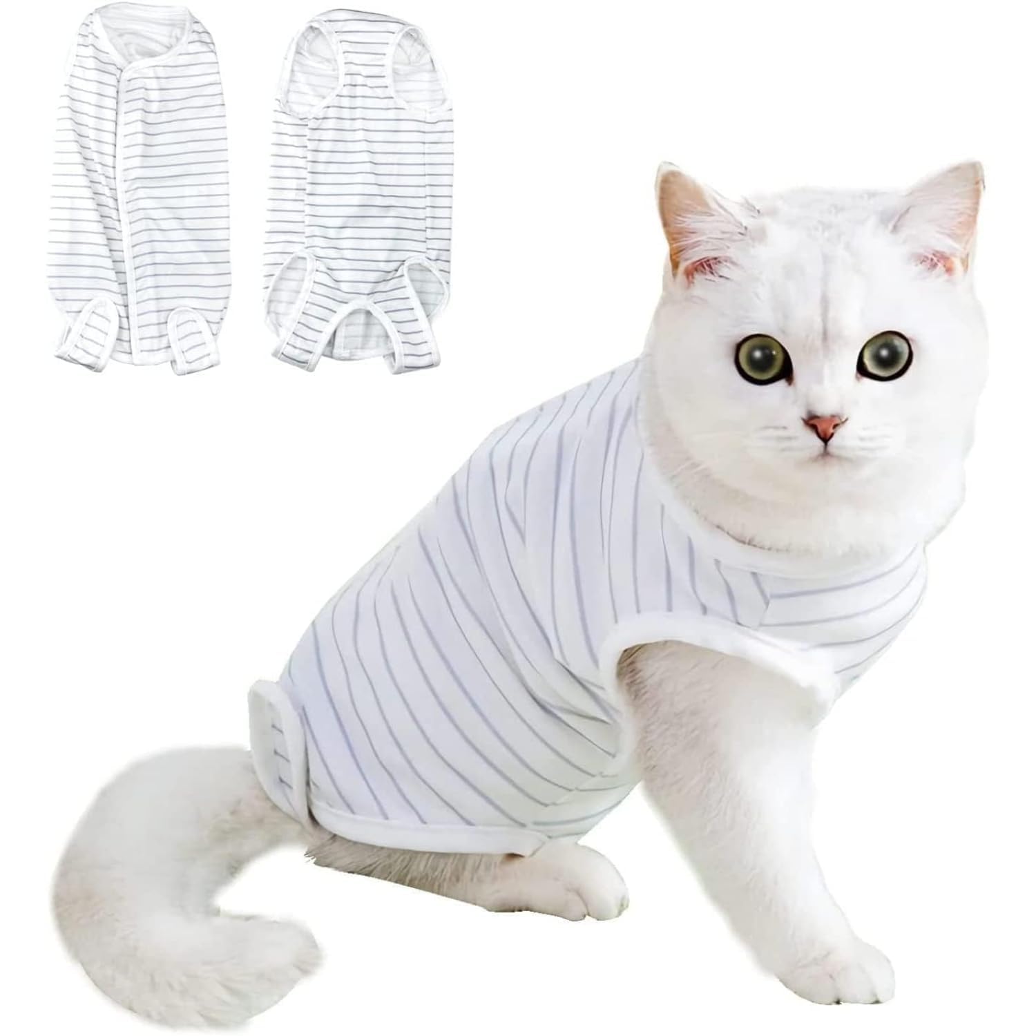 🌿【نسيج قطني جيد التهوية】مصنوع من مادة قطنية ناعمة بنسبة 100% ومضادة للحساسية توفر تدفق هواء وراحة مثالية، مما يحافظ على برودة قطتك مع حماية المواقع الجراحية من العدوى والتهيج، ويمكن غسلها في الغسالة لسهولة العناية.