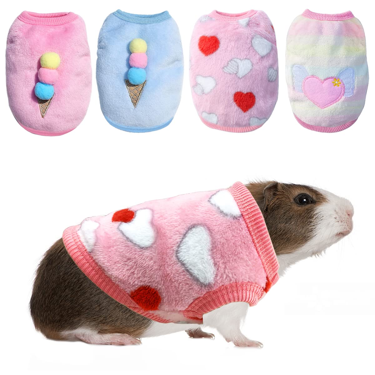 اسم المنتج: 4 قطع من ملابس الأرنب للأرانب – سترة دافئة للحيوانات الصغيرة وخنزير غينيا، ملابس تنكرية ناعمة
